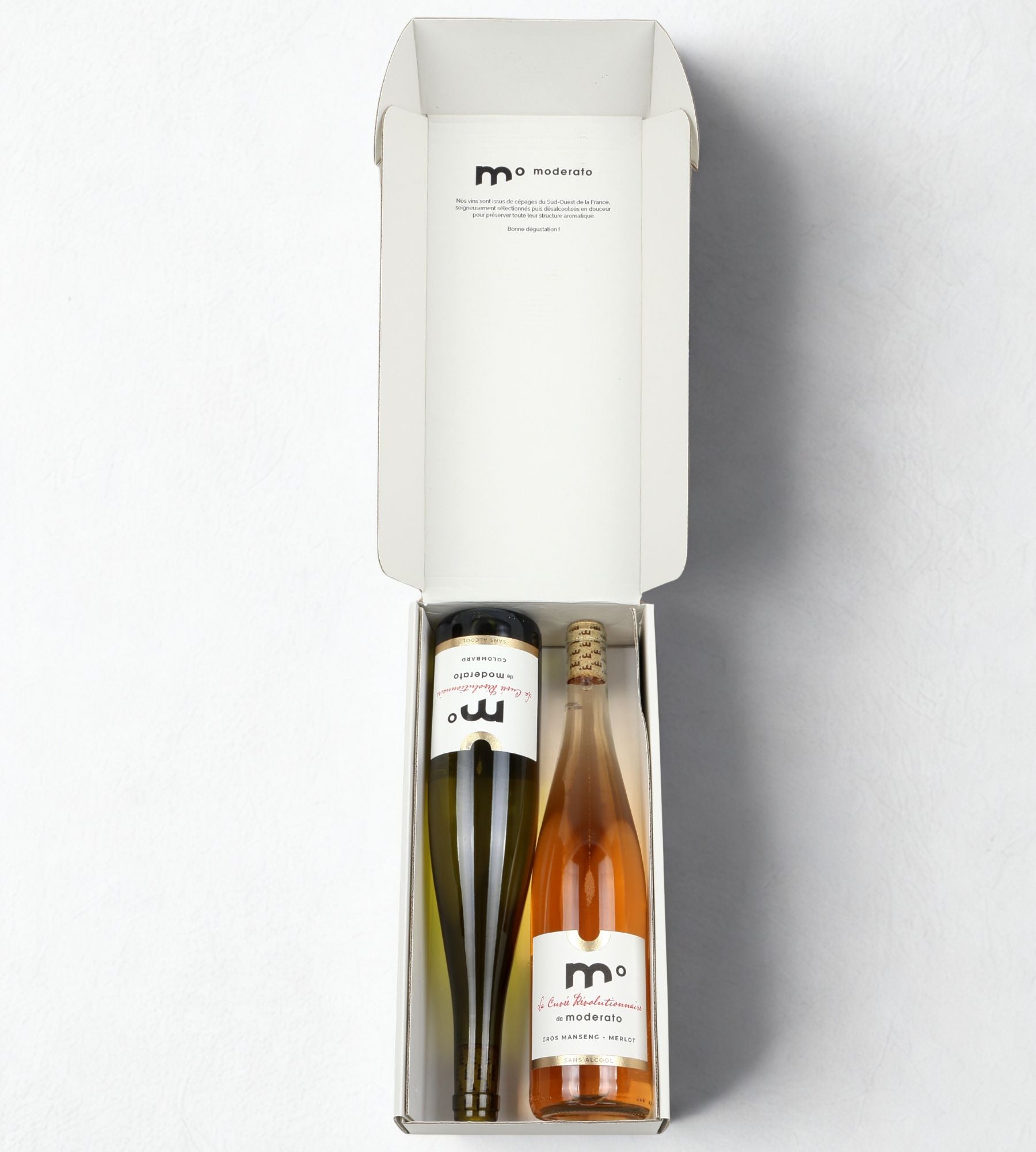 Avec Moderato, nous voulons élargir la famille du vin : nous nous inspirons du vin classique pour créer de nouveaux styles uniques. On retrouve bien les marqueurs essentiels du vin — tanins pour les rouges, légère amertume pour les rosés, fraîcheur acide pour les blancs — mais sans alcool. Notre objectif est de préserver cet ADN vin, en mettant en avant le fruit, la fraîcheur et cette petite longueur en bouche si caractéristique, tout en proposant une expérience nouvelle et libérée de l’alcool.