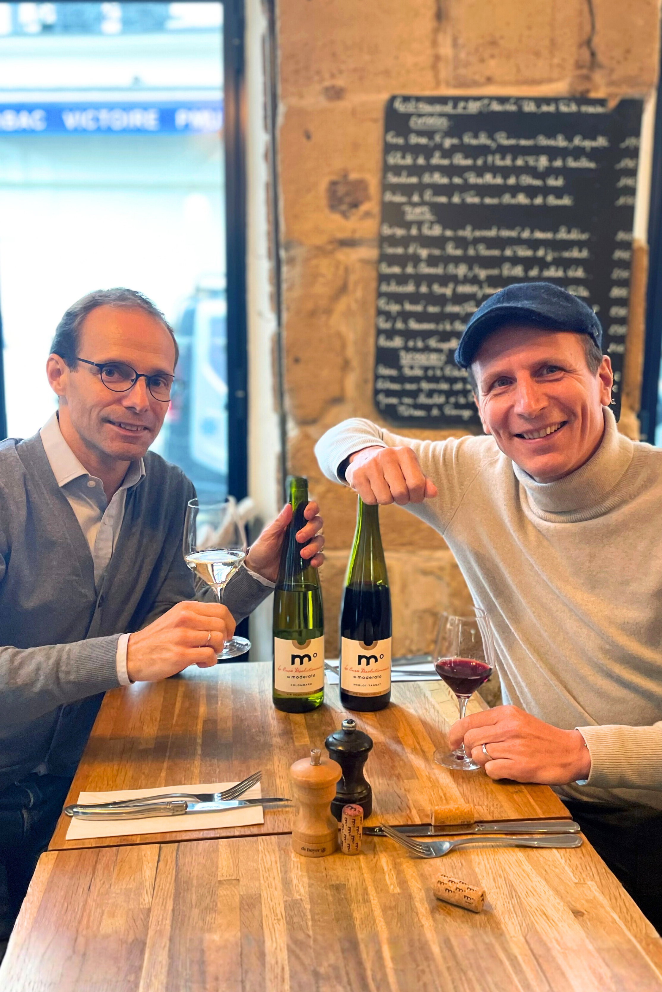 En 2020, Sébastien et Fabien, co-fondateurs de moderato, en ont presque fait une crise de foi…Alors en bon français, ils se sont dit qu’ils allaient faire la REVOLUTION (vieux réflexe…), et ont imaginé faire un vin aussi bon, mais sans alcool.Pour parvenir au vin parfait, ils ont cherché. Les meilleurs vignerons partenaires, les meilleurs terroirs, et la meilleure méthode de distillation. Aujourd’hui, épaulés par une équipe de passionnés de vin convaincus comme eux qu’une autre voie est possible, ils continuent à faire la révolution du vin en élaborant des gammes toujours plus raffinées, cuvée après cuvée.Pour avoir autant de plaisir avec ou sans alcoolpour que les sobres d’un jour ne voient pas la différencepour que tous les palais naissent et demeurent égaux en droit, alcool ou pas.Parce que si on peut arrêter ou réduire sa consommation d’alcool en continuant à se faire plaisir,on sera libre de le savourer le soir, au déjeuner, au goûter, seul.e, entres amis, au volant, en gardant les enfants…Libre de sortir du rang, de surprendre son entourage,Libre de ne plus compter les calories puisqu’il n’y en a presque pas.Libre de prendre du plaisir sans jouer avec notre santé.C’était culotté d’imaginer tout cela, et c’est désormais réalité.moderato.Liberté, Egalité…Sobriété, Culotté, ou Santé !On vous laisse compléter.